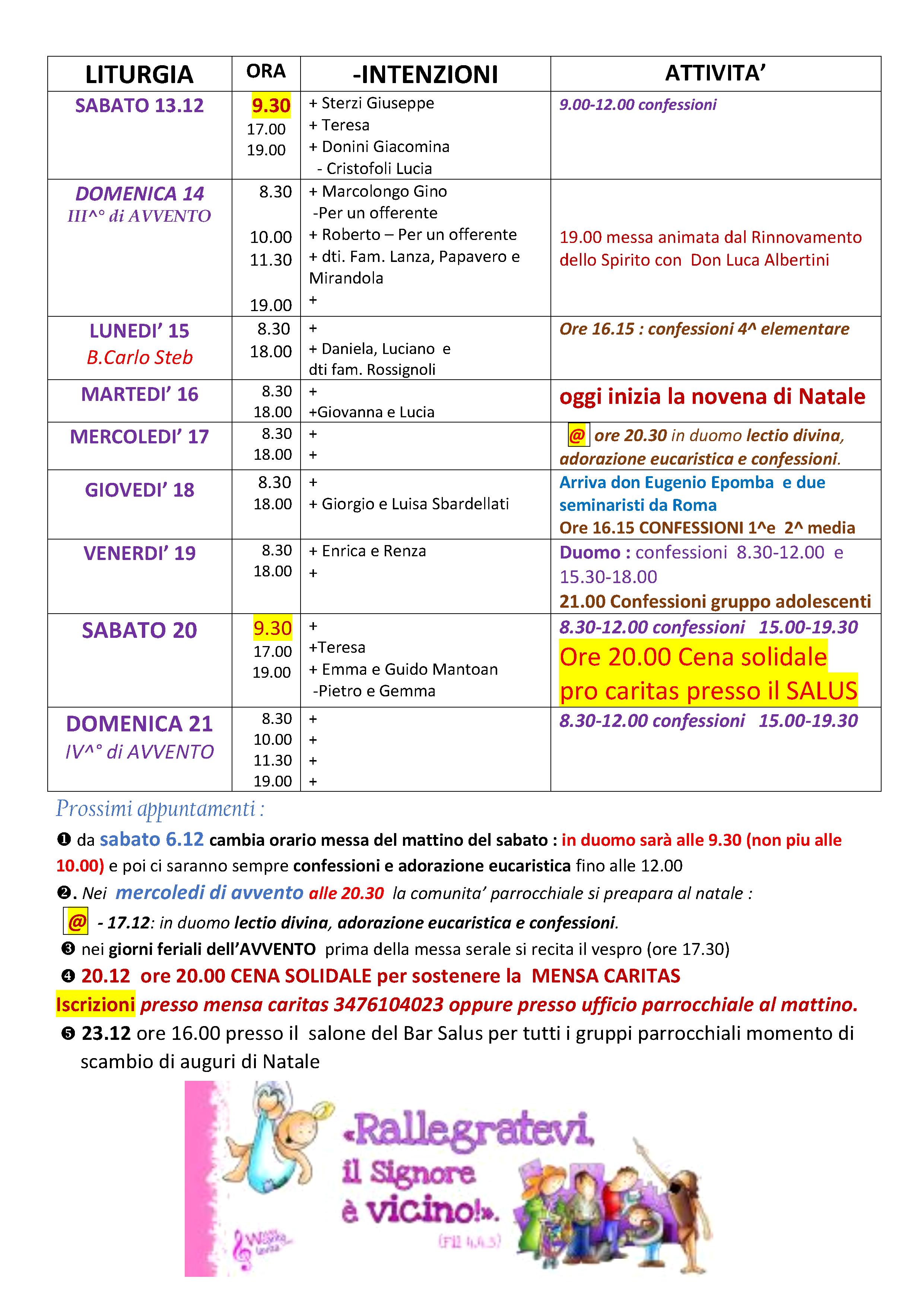 Orari Sante Messe
