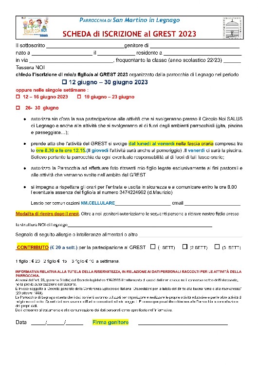 GREST E CAMPOSCUOLA - Parrocchia di San Martino